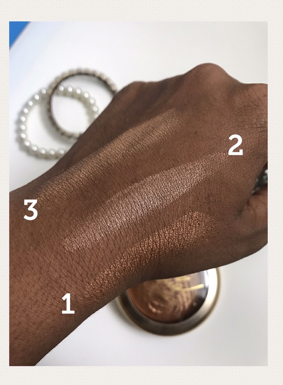 (de abajo hacia arriba 1. Maria Carey 2. NARS 3. Becca Cosmetics)