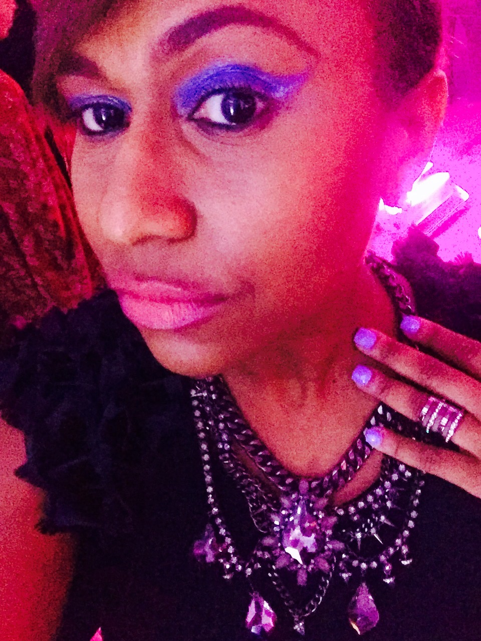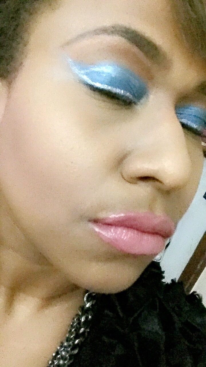 En el maquillaje me salí un poco del «smokey eye» negro (que es mi favorito) y probé el NYX liquid liner plateado sobre una sombra azul. La combinación fue de impacto y me sentí increíble.
