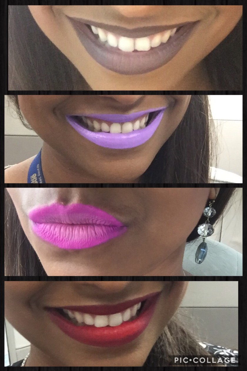 3 labiales duo y 1 labial matte color violeta